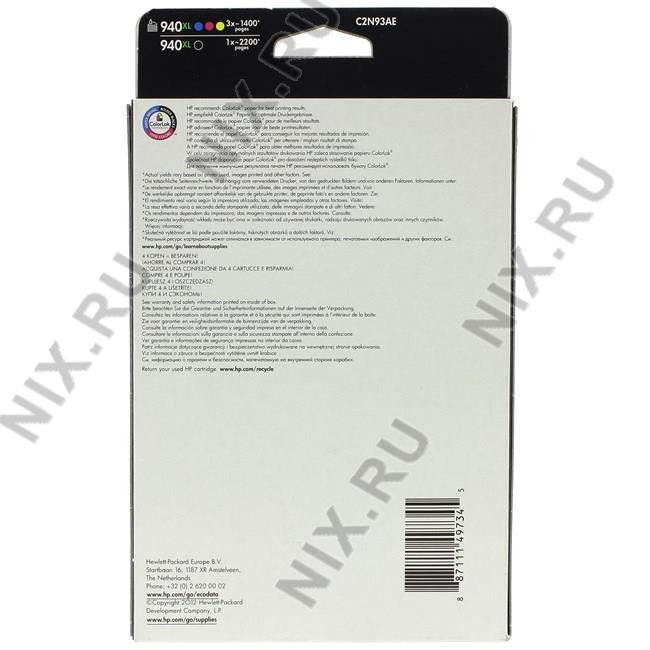 Картридж HP C2N93AE (№940XL) Cyan/Magenta/Yellow/Black для HP Officejet Pro 8000/8500(повышенной ёмкости)