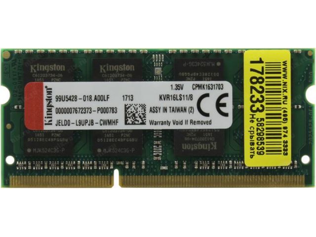 Kingston ValueRAM KVR16LS11/8(WP) DDR3 SODIMM 8Gb PC3-12800  CL11 (for NoteBook)