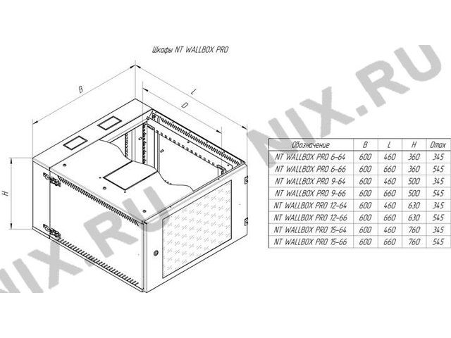 • NT WALLBOX PRO 12-64 G Шкаф 19 настенный, двухсекционный, серый, 12U 600*460, дверь стекло-металл