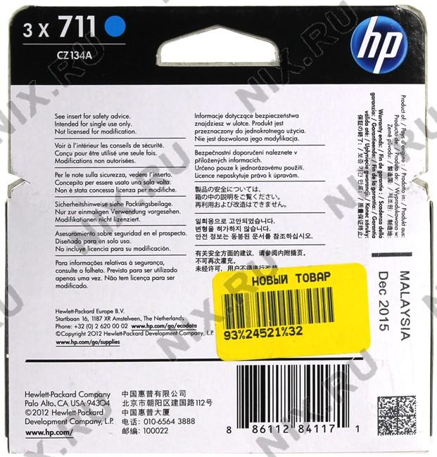 Картридж цветной HP 3-Pack CZ134A (№711) (комплект из 3 голубых картриджей), 3 шт.