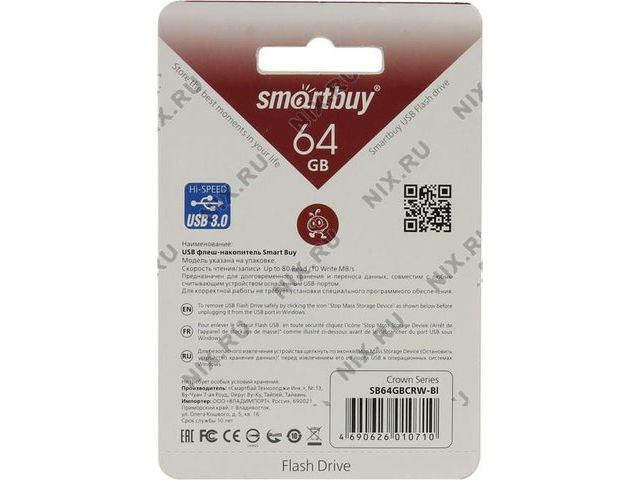 • SmartBuy Crown SB64GBCRW-Bl USB3.0 Flash Drive 64Gb (RTL)