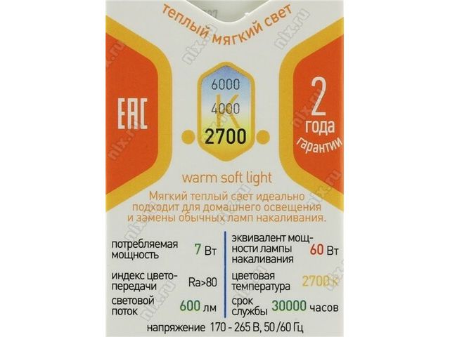 ЭРА (smd) B35-7w-827-E27 (E27, 600 люмен, 2700К, 7Вт, 170-265В)