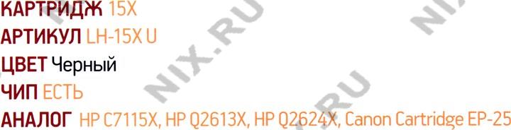 | Аналог картриджа | C7115X (№15X) экономичный, Q2613X (№13X) (экономичный), Q2624X (№24X) (экономичный), EP-25 |