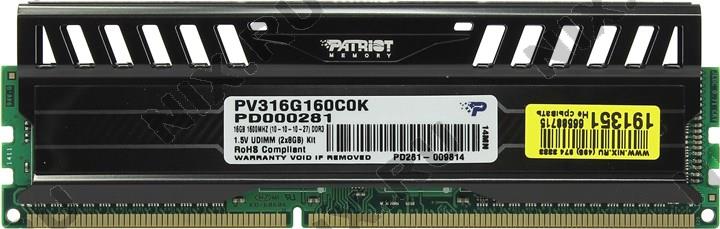 Patriot Viper PV316G160C0K DDR3 DIMM 16Gb KIT 2*8Gb PC3-12800 CL10