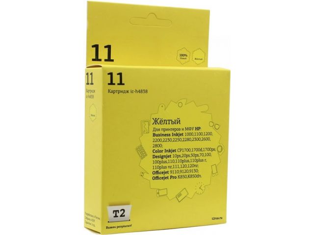 Картридж T2 ic-h4838 (№11) Yellow для HP 1000/1200/2200, DJ 70/100/110/500/800, OJ 9110/9120/9130