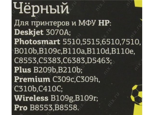 | Совместимость | HP Deskjet 3070A, HP Photosmart 5510, 5515, 6510, 7510, B010b, B100e, B109c, B110a, B110d, C6383, C8383, C8553, D5463, HP Photosmart Plus B209b, B210b, HP Photosmart Premium C309c, C309h, C310b, C410c, HP Photosmart Pro B8553, B8558, HP Photosmart Wireless B109g, B109r |