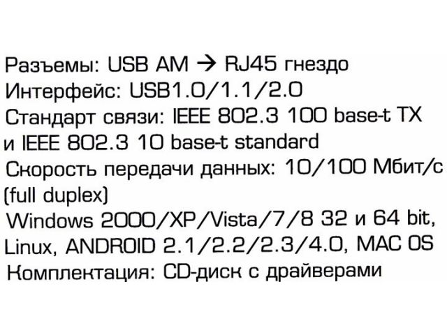 5bites UA2-45-02BK Кабель-адаптер USB2.0 -- UTP 100Mbps