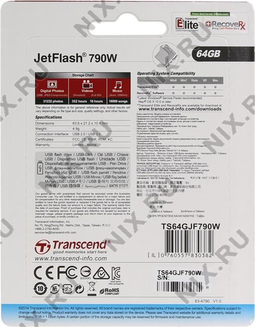 Transcend TS64GJF790W JetFlash 790 USB3.0 Flash Drive 64Gb (RTL)