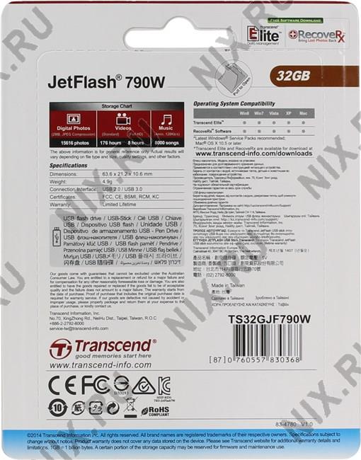 Transcend TS32GJF790W JetFlash 790 USB3.0 Flash Drive 32Gb (RTL)