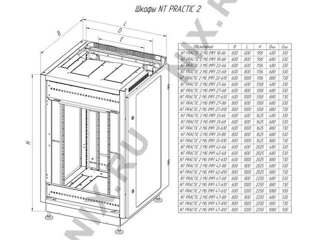• NT PRACTIC 2 MG47-68 G Шкаф 19” напольный 47U 600х800, дверь со стеклом, серый (3ч)