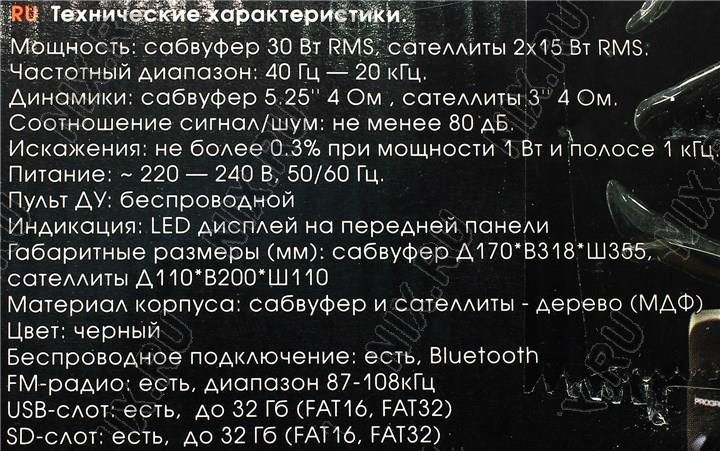 | Материал корпуса | Сабвуфер: дерево (МДФ) 9 мм; сателлиты: дерево (МДФ) 5 мм |