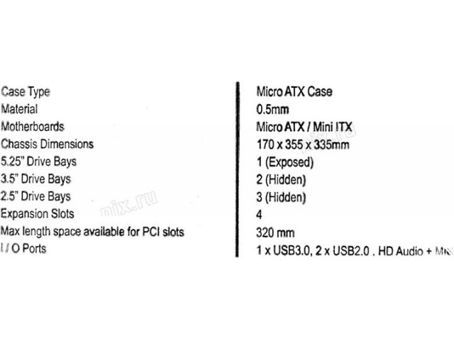 | Отсеков 5,25 дюйма | 1 |