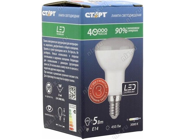 СТАРТ LEDR50E14 5W30 (E14, 450 люмен, 3000К, 5Вт, 220В)