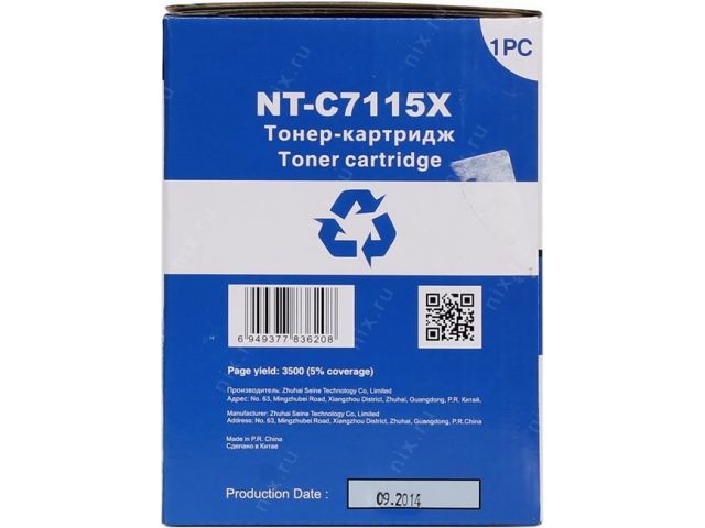 • Картридж G&G NT-C7115X для HP LJ1000/1200/N/3300mfp/3320mfp/3330mfp,Canon LBP1210