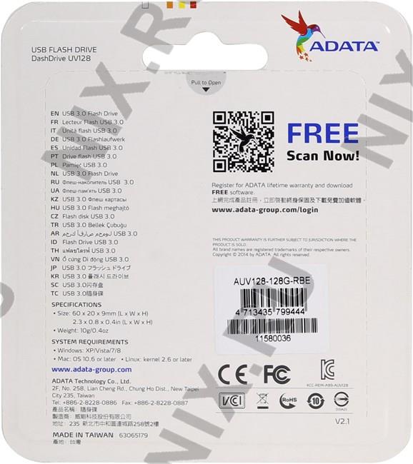 ADATA DashDrive UV128 AUV128-128G-RBE USB3.0 Flash Drive 128Gb