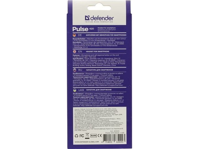 Наушники с микрофоном Defender Pulse-420 Red (шнур 1.2м) 63424