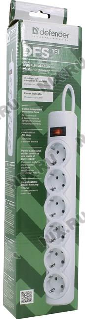 Сетевой фильтр Defender DFS 151 White  1.8м ( 6 розеток )  99489