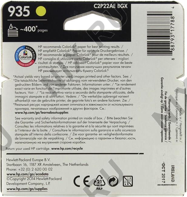 • Картридж HP C2P22AE (№935) Yellow для HP Officejet Pro 6230/6830
