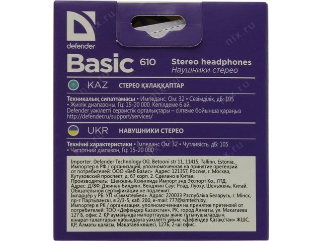 • Наушники Defender Basic-610 (шнур 1.1м)  63610