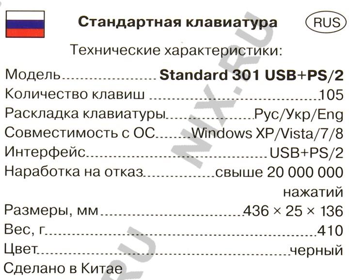 Клавиатура SVEN Standard 301 Black USB&PS/2 105КЛ