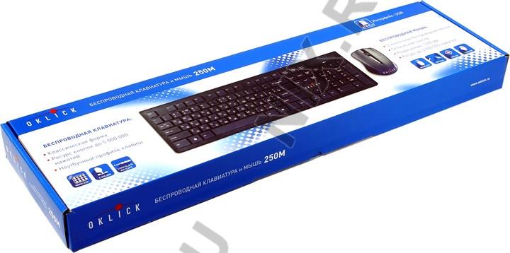 OKLICK Wireless Keyboard & Optical Mouse 250M Black (Кл-ра, USB,FM+Мышь 3кн, Roll, USB, FM) 997834