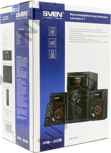 Колонки SVEN MS-302 Black (2x10W +Subwoofer 20W дерево, USB, SD, FM, ПДУ)
