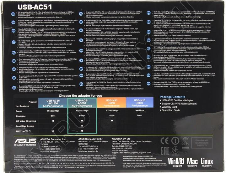 ASUS USB-AC51 Dual-Band Wireless USB Adapter (802.11a/b/g/n/ac, 433Mbps)