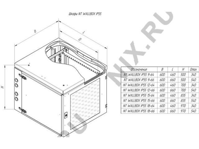 NT WALLBOX IP55 9-66 B Шкаф 19 настенный, пылевлагозащищенный,чёрный, 9U 600*660, дверь цельнометалл.