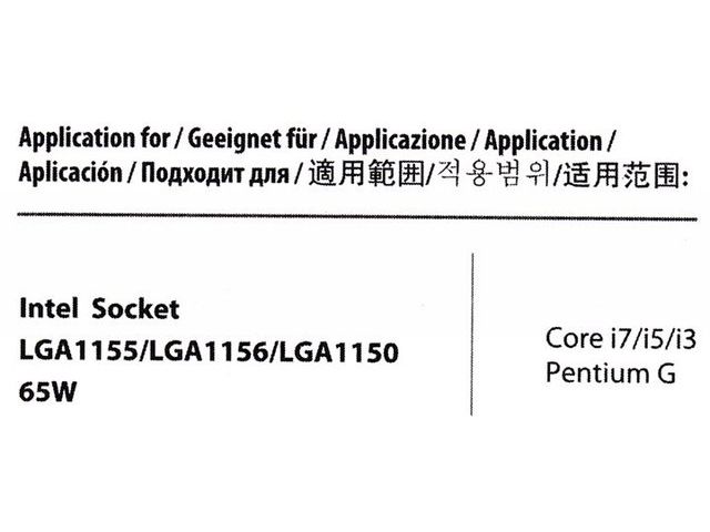Совместимость охлажденияSocket LGA1200, Socket LGA1151, Socket LGA1150, Socket LGA1155, Socket LGA1156