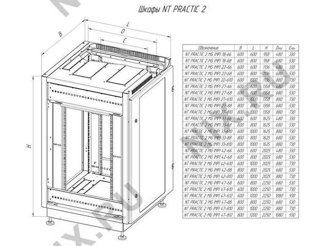 • NT PRACTIC 2 MP27-68 G Шкаф 19 напольный 27U 600*800, дверь перфорированная, серый (3ч)