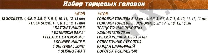 | Код товара | Набор торцевых головок 1/4 23 предмета |