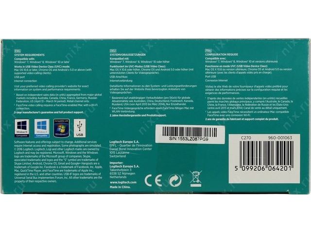 Logitech HD Webcam C270 (RTL) (USB2.0, 1280x720, микрофон) 960-001063