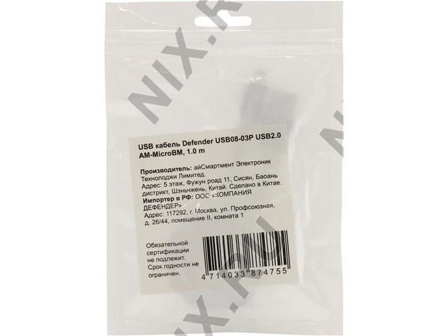 Defender USB08-03P 1 м. USB 2.0 A - micro-B