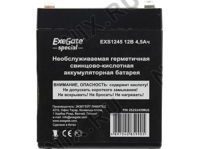 Аккумулятор для охранно-пожарных систем ExeGate EXS1245 12В 4.5 Ач