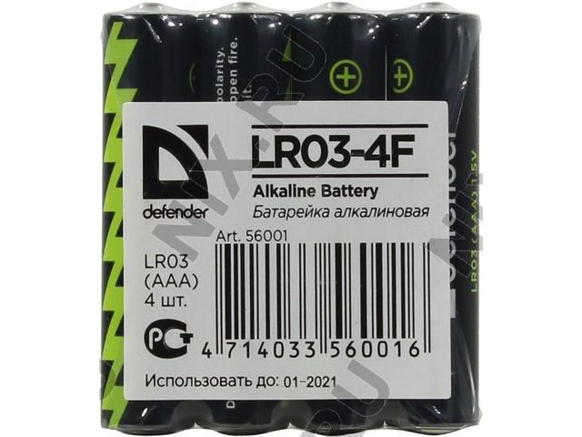 • Defender LR03-4F Size AAA, щелочной (alkaline) уп. 4 шт  56001