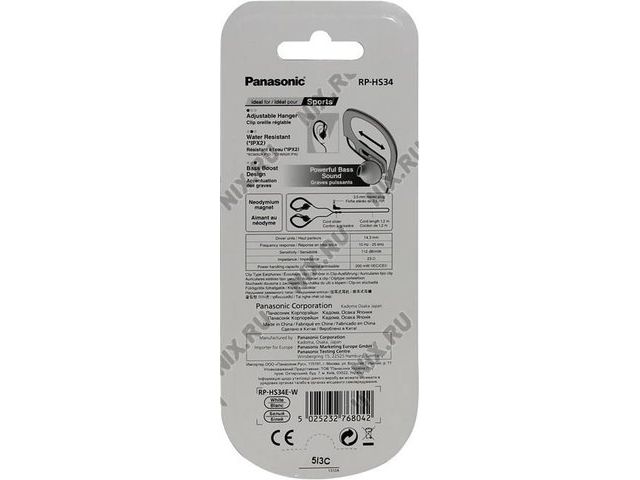 Наушники Panasonic RP-HS34E-W  White  (шнур 1.2м)