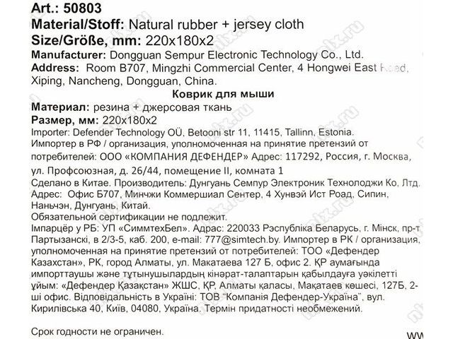 Тип оборудованияКоврик для мыши
