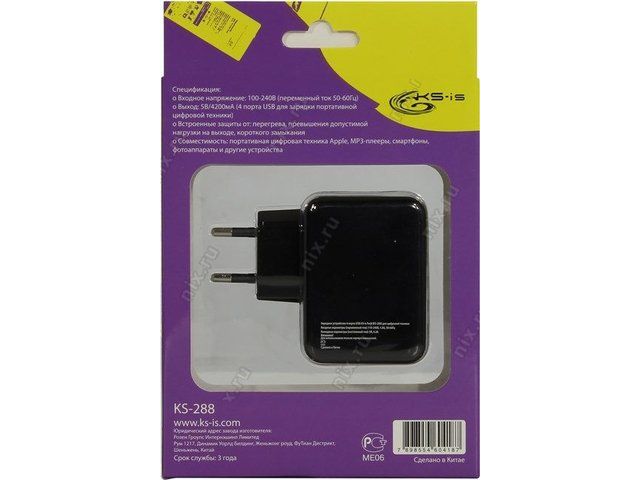 KS-is Forji KS-288 Зарядное устройство USB (Вых. DC5V, 21W, 4xUSB, быстрая зарядка)