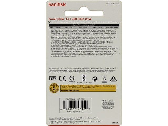 Флешка SanDisk Cruzer Glide 3.0 SDCZ600-256G-G35 USB 256 ГБ