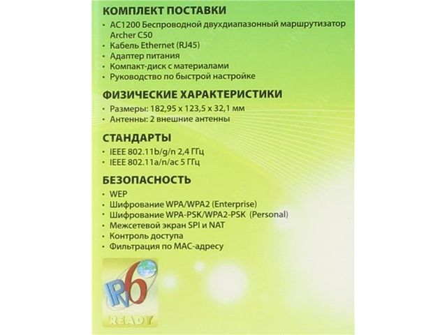 | Работа в нескольких диапазонах | Dual Band (2.4 ГГц + 5 ГГц) |