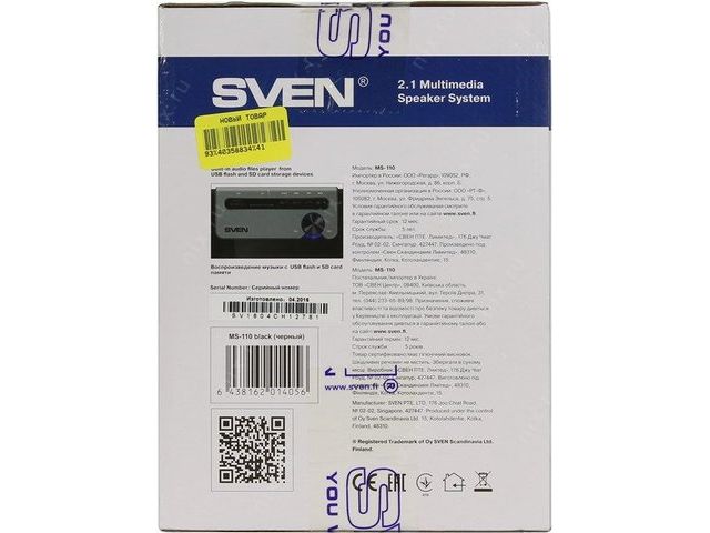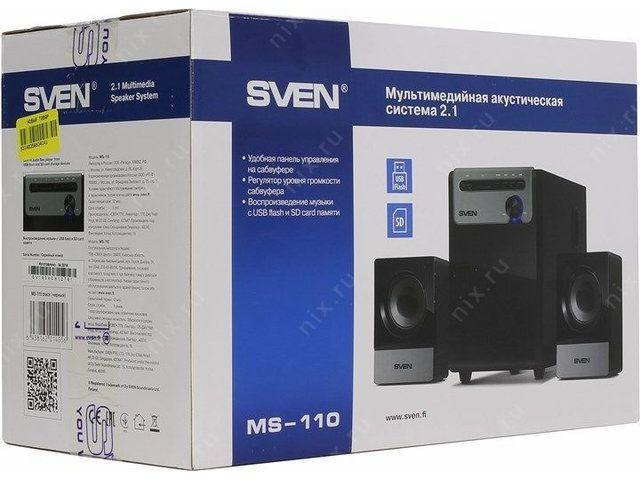 Колонки SVEN MS-110 Black (2x2.5W +Subwoofer 5W дерево, SD, USB)