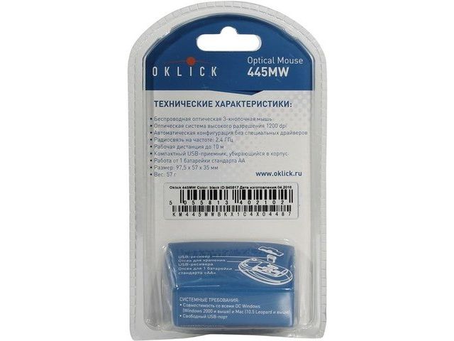 OKLICK Wireless Optical Mouse 445MW  Black  (RTL) USB 3btn+Roll 945817