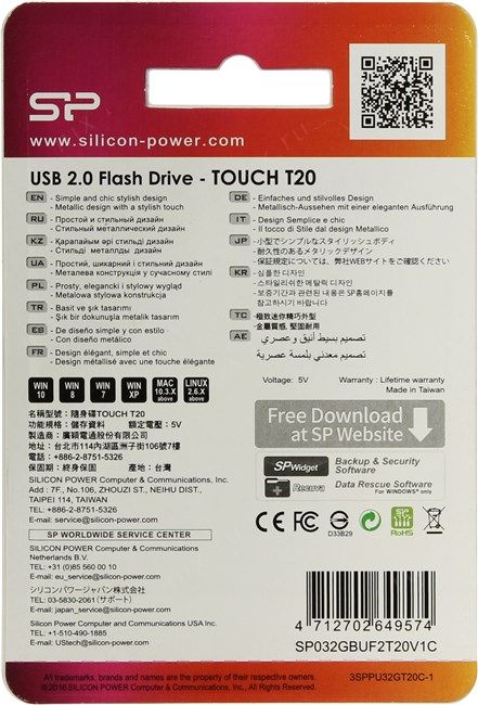 Silicon Power Touch T20 SP032GBUF2T20V1C USB2.0 Flash Drive 32Gb (RTL)