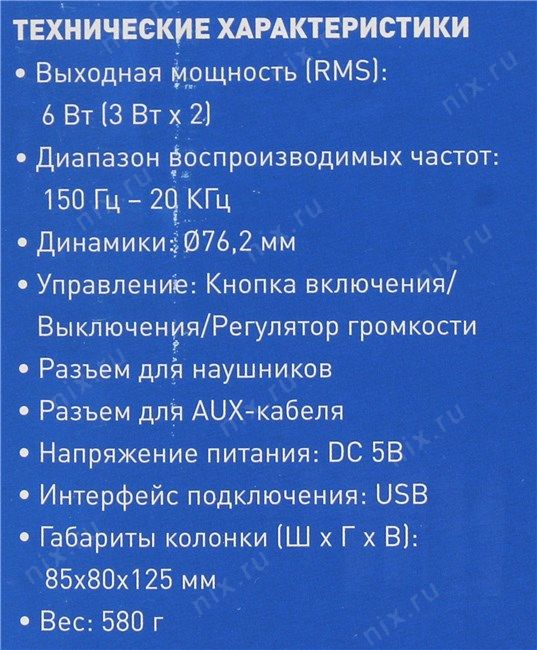 Выходная мощность2 x 3 Вт