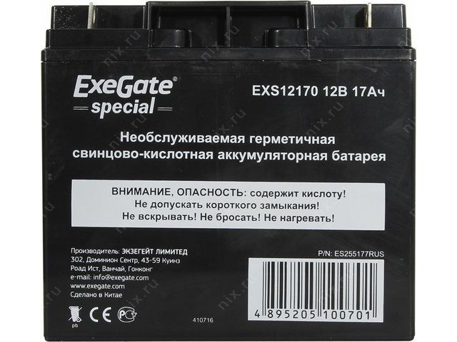 Аккумулятор для охранно-пожарных систем ExeGate EXS12170 12В 17 Ач