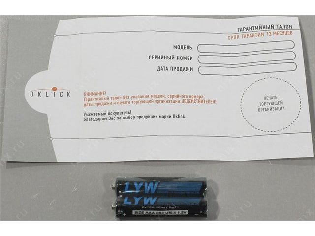 Комплект поставки2 батарейки типа AAA, USB-приемник