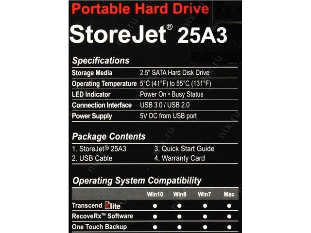 • TRANSCEND StoreJet 25A3 TS2TSJ25A3W USB3.0 Portable 2.5  HDD 2Tb EXT (RTL)