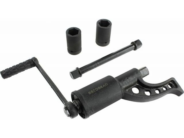Баллонный ключ с усилителем крутящего момента (ручной механический гайковёрт) предназначен для откручивания колёсных гаек грузовых автомобилей, а также для работы с большими резьбовыми крепежами, требующими большого усилия. Усиление крутящего момента достигается с помощью планетарного редуктора. В комплекте две ударные торцевые головки на 30 и 32 мм