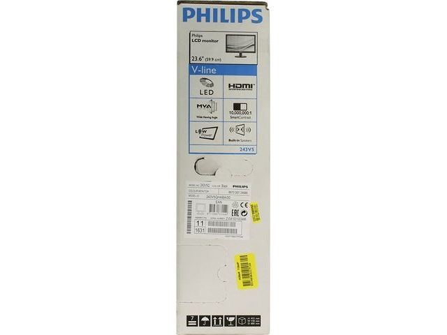 23.6 ЖК монитор PHILIPS 243V5QHABA/00/01 (LCD, 1920x1080, D-Sub, DVI, HDMI)