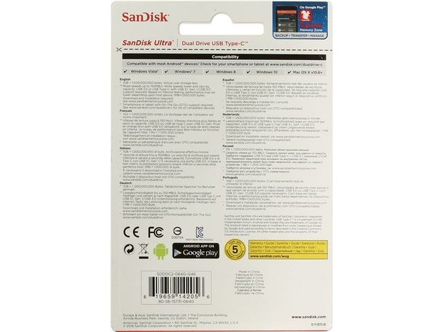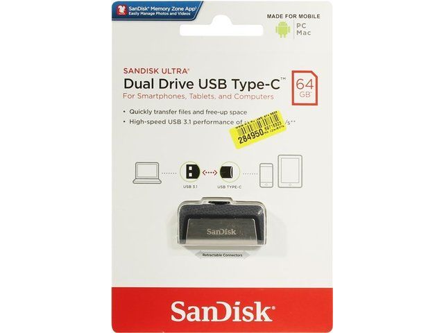 Флешка SanDisk Ultra Dual type C SDDDC2-064G-G46 USB/USB-C OTG 64 ГБ Пароль